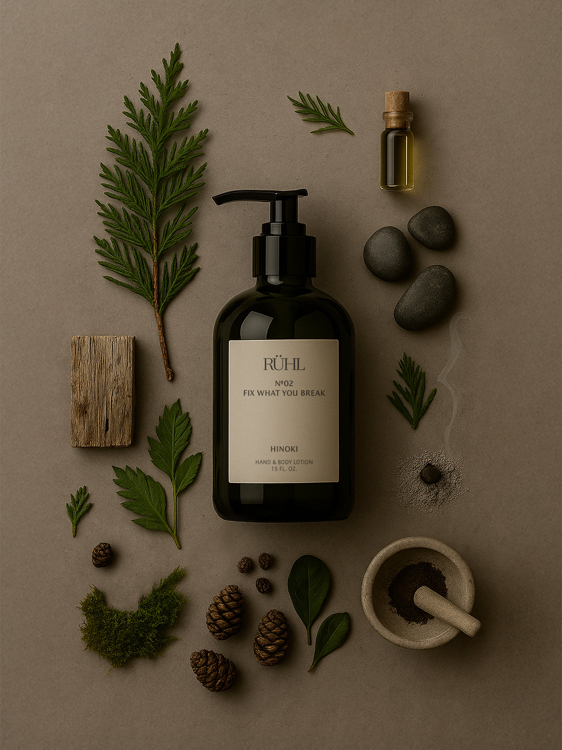 Airy Japanese cypress with whispers of smoke and citrus peel. Meditative and wood-forward, recalling cedar baths and still temples.